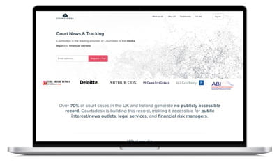 Courtsdesk is the news and legal intelligence platform built to bring coverage and structure to the many disparate sources of UK and Irish legal data. By centralising data and providing tools for easy search and analytics, Courtsdesk supports users in their research, monitoring, KYC, and AML functions. Our users benefit from access to data from the UK and Irish Upper and Lower Courts.